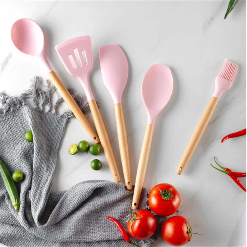 11 шт.компл. 9 шт.компл. розовая силиконовая кухонная утварь с дере...