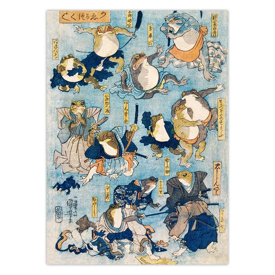 Винтажная лягушка художественный плакат на холсте принт знаменитых героев Кабуки сцена лягушек японский деревянный блок настенная живопись на холсте