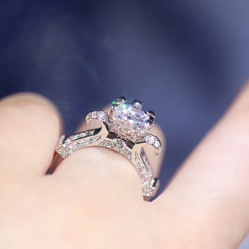 CC S925 Кольца для женщин CZ бриллиант БЕЛОЕ ЗОЛОТО посеребренное к...