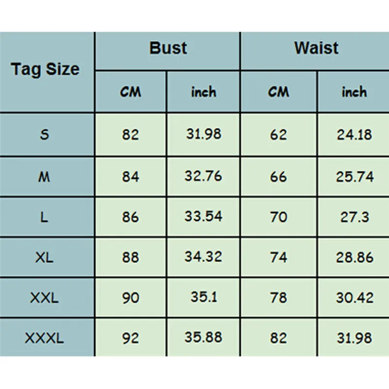 Материал: полиэстерЦвет: как на фотографииСлучаи: ПовседневныйРазмер: S/M/L/XL/XXL/XXXLРазмер: обхват груди; ДлинаS: 82 см 62 смM: 84 см 66 смL: 86 см 70 смXL: 88 см 74 смXXL: 90 см 78 смXXXL: 92 см 82 смРазмер S = US4/EU36/UK8Размер M = US6/EU38/UK10Размер L = US8/EU40/UK12Размер XL = US10/EU42/UK14Размер XXL = US12/EU44/UK16Бирка размера XXXL = US14/EU46/UK18Содержимое упаковки:1 x сексуальное нижнее бельеПримечание:1. Наши размеры Азиатские, на 1-2 размера меньше европейских, пожалуйста, выберите свой размер в соответствии с размером таблицы.2. Из-за ручного измерения возможна погрешность в размере около 1-2 см. Цвет изделия, отображаемый на фотографиях, может немного отличаться