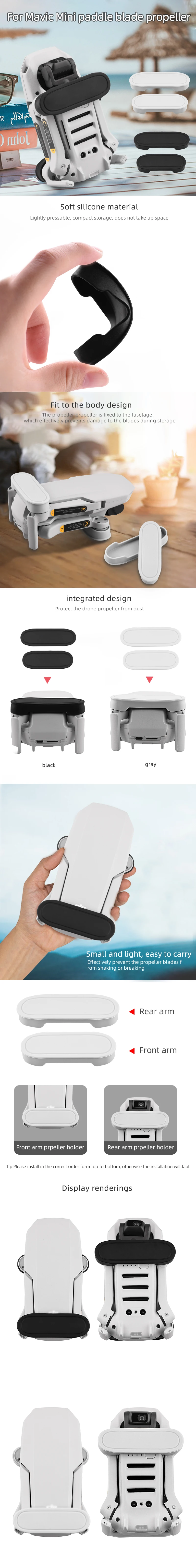 Описание:Материал: силикагель,Цвет: красный, серый,Применимые модели: для Mavic mini/Mavic Mini 2/DJI Mini SE,Вес нетто: 10 г,Размер продукта: 7,5*2,5*1,4 см,Упаковочный лист:2 шт. держатель пропеллера,Примечание: Не включает дроны и другие.