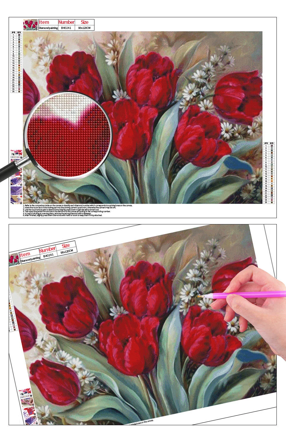 У нас есть 20-30% дополнительных алмазов в каждой упаковке, мы имеем хороший контроль качества, если вы обнаружили отсутствие алмазов, первая отправка на нас. Мы можем отправить вам бесплатно. После отправки вам придется оплатить доставку. Свяжитесь с нами через сообщение или через торгового менеджера.