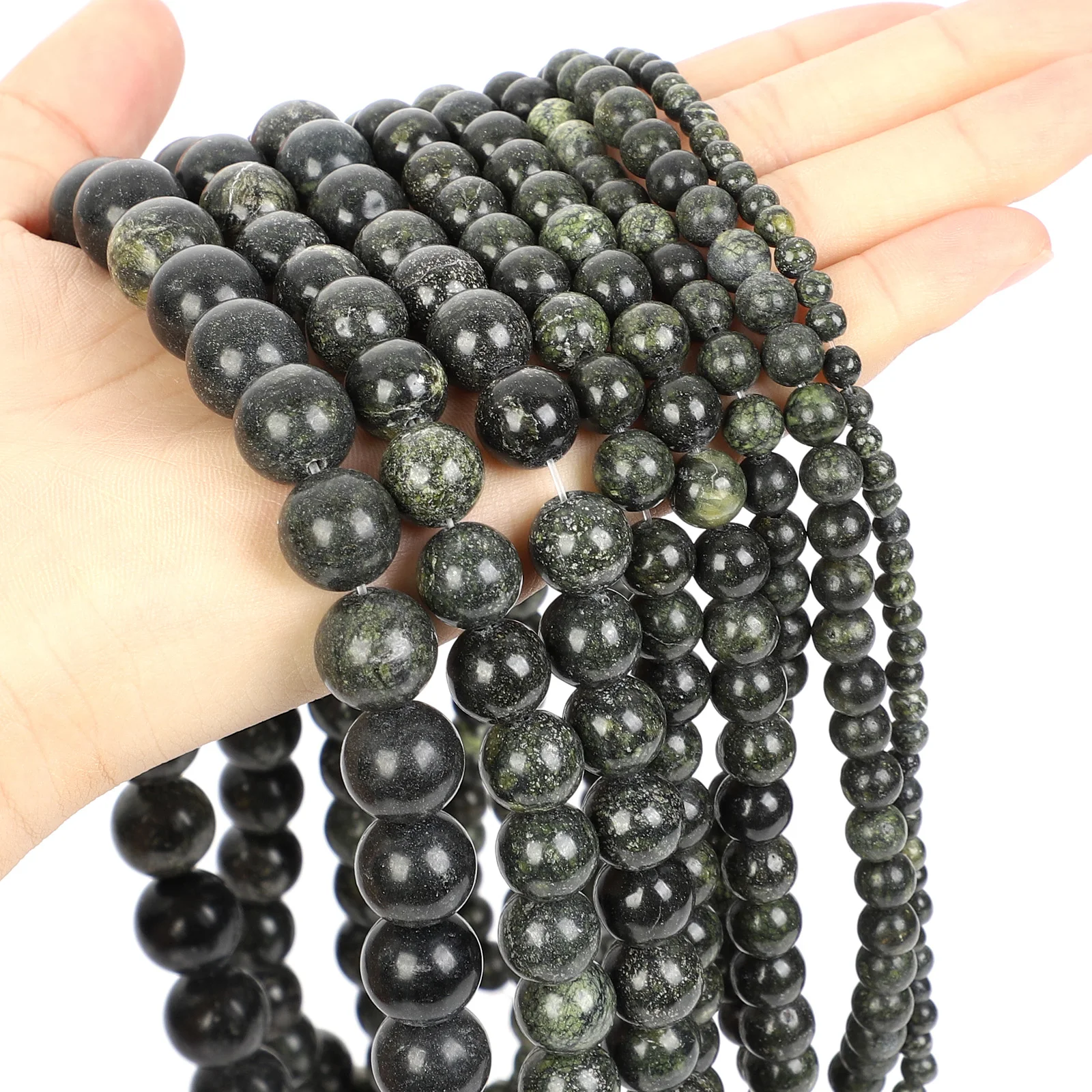 Бусины из натурального камня, темно-зеленые круглые свободные бусины для изготовления ювелирных изделий, рукоделия, аксессуары для браслетов сделай сам, бусины 4-12 мм