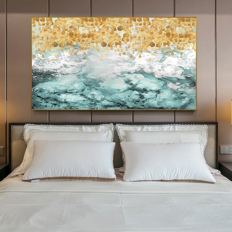 Скандинавский стиль, зеленое золото, жидкость, абстрактная картина,...