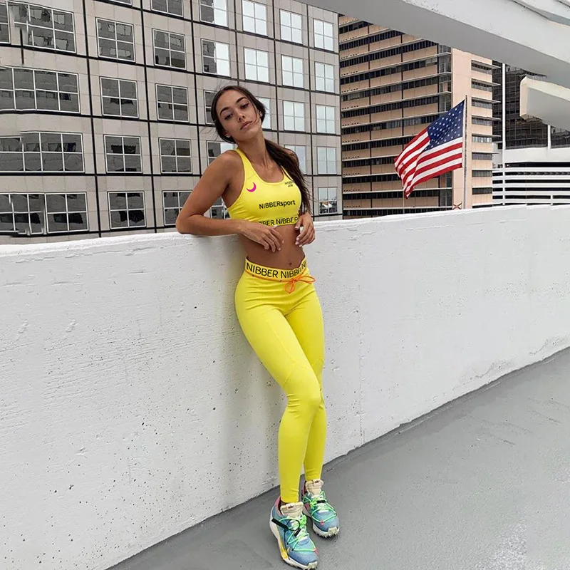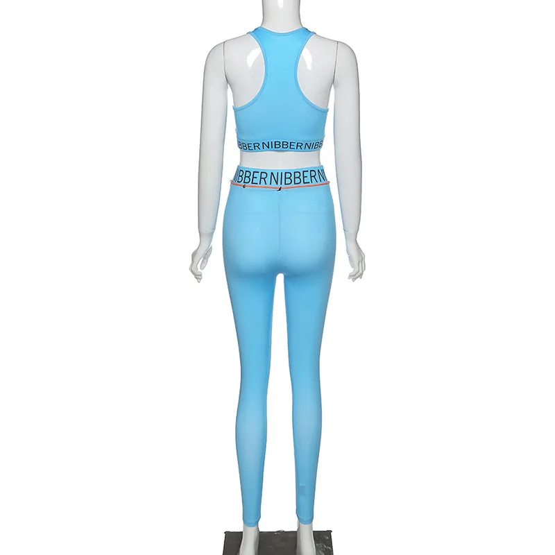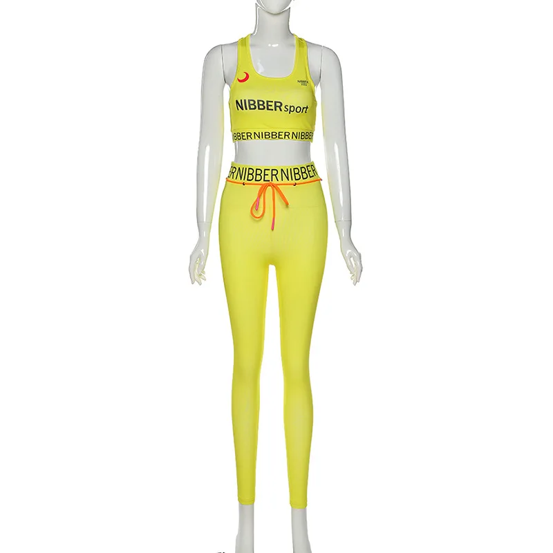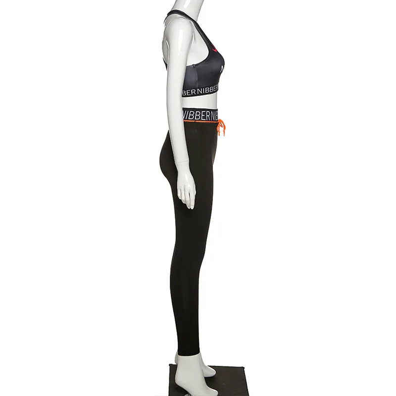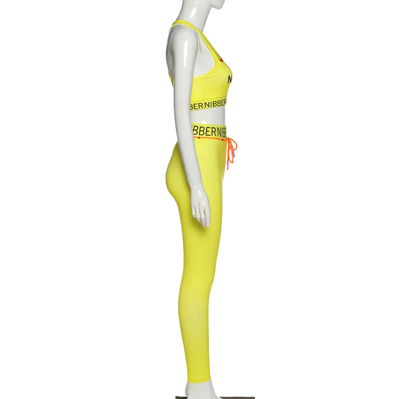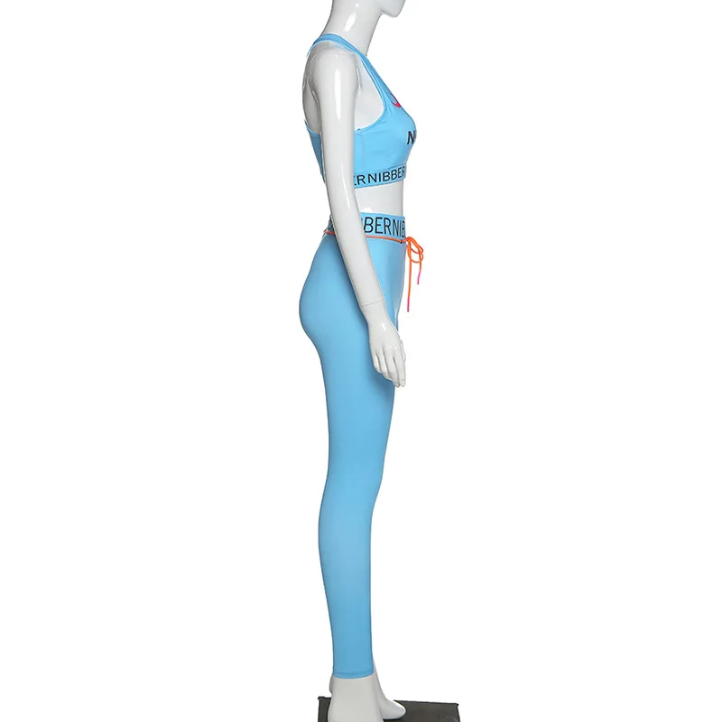 Женский комплект 2 шт. майка с надписью NewAsia и длинные штаны; Спортивный костюм; Комплект из двух предметов; Спортивная одежда; Эластичные спортивные комплекты