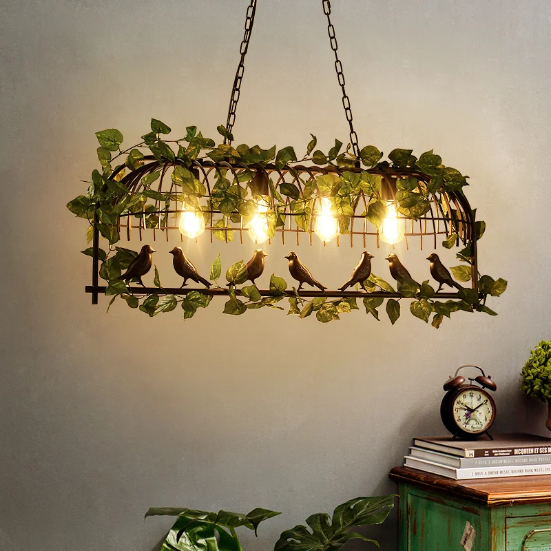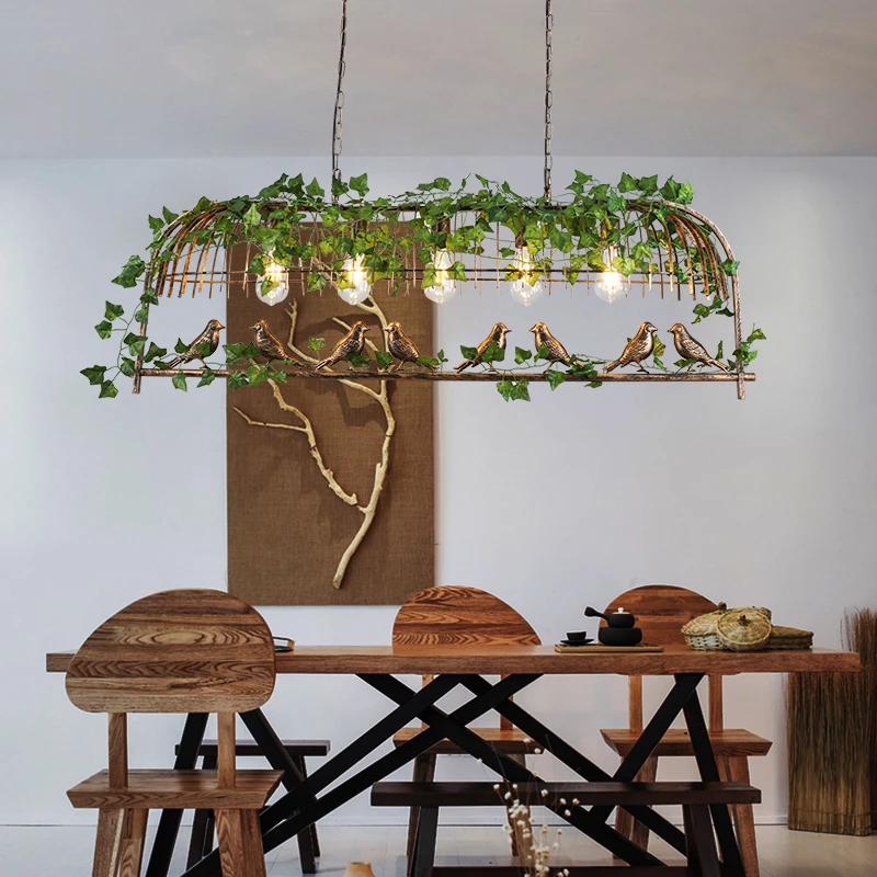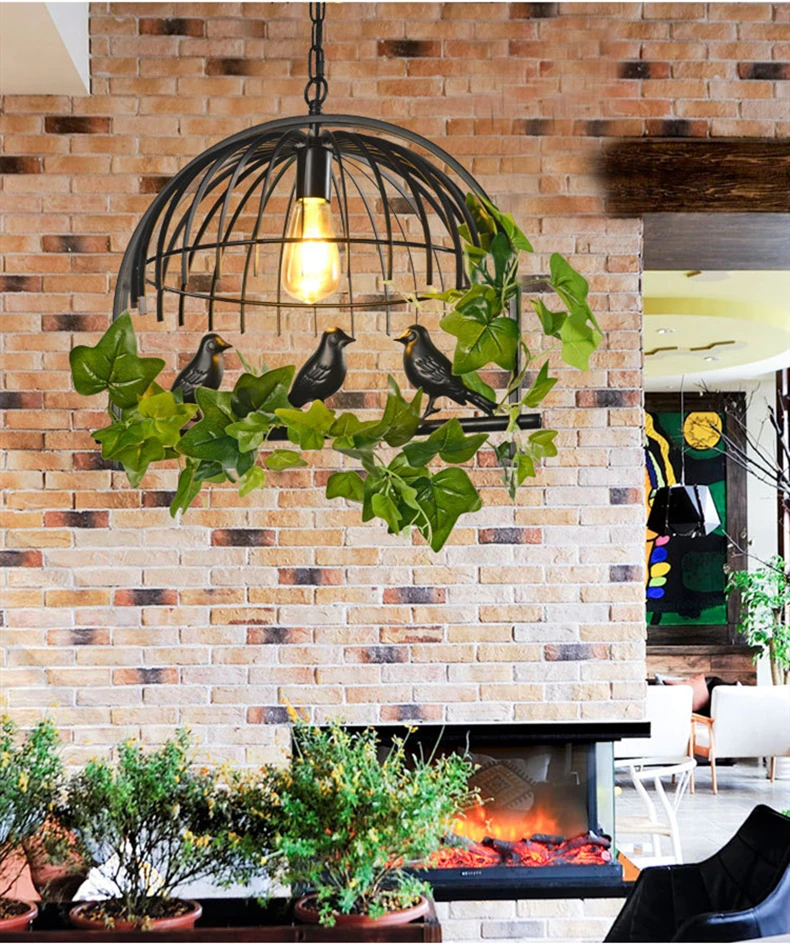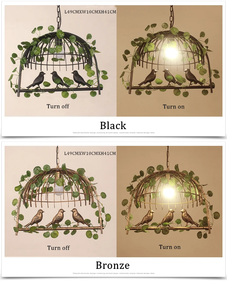 Современная Подвесная лампа с растениями, чернаябронзовая Светодиодная потолочная лампа с птицами для коридора, кухни, гостиной, спальни