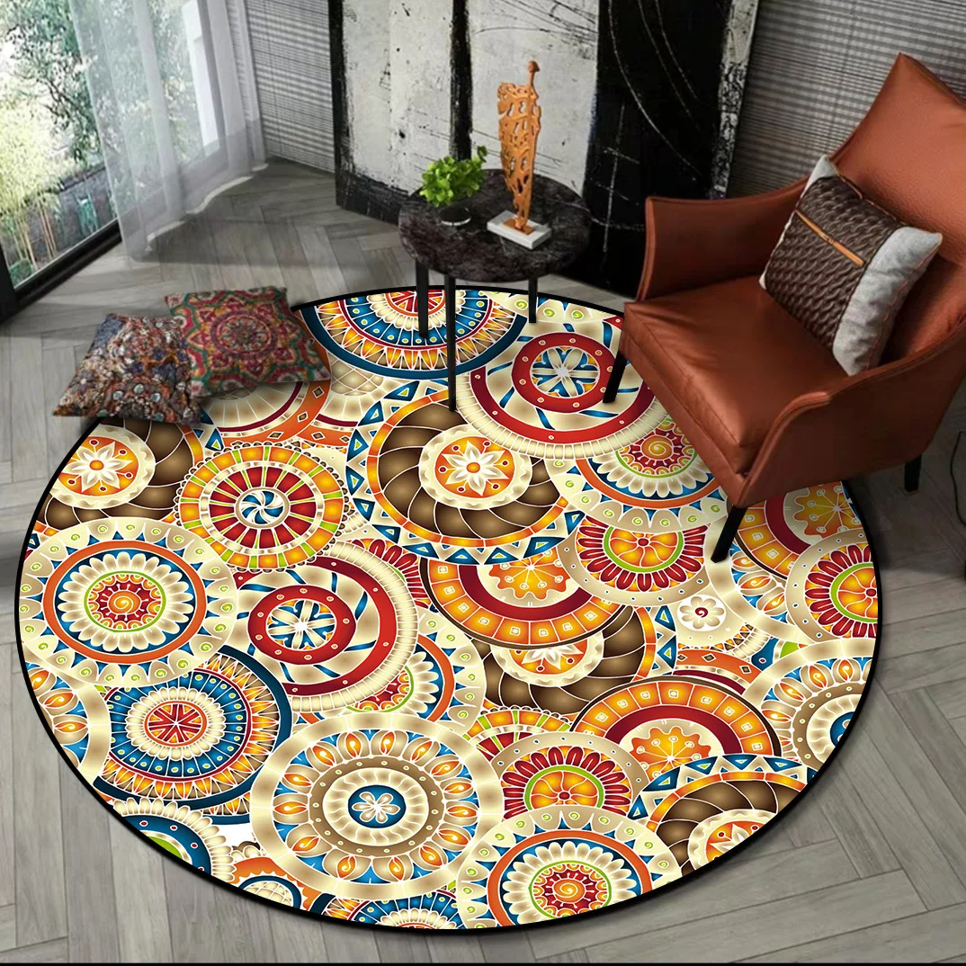 Круглый ковер в стиле ретро для гостиной большие этнические, коврик...