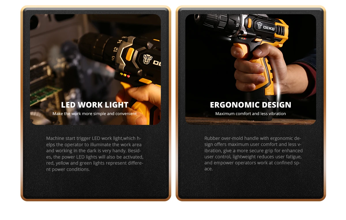 Аккумуляторная дрель DEKO, беспроводная дрель с литий-ионным аккуму...