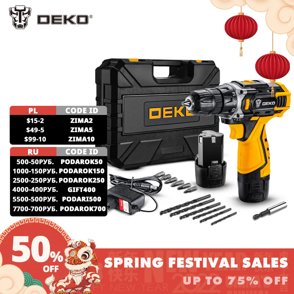 Электрическая дрель DEKO, беспроводная дрель с литиевым аккумулятор...