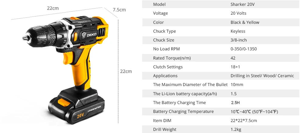 Аккумуляторная дрель-шуруповерт DEKO Banger, 12 ВLoner 16 ВSharker ...