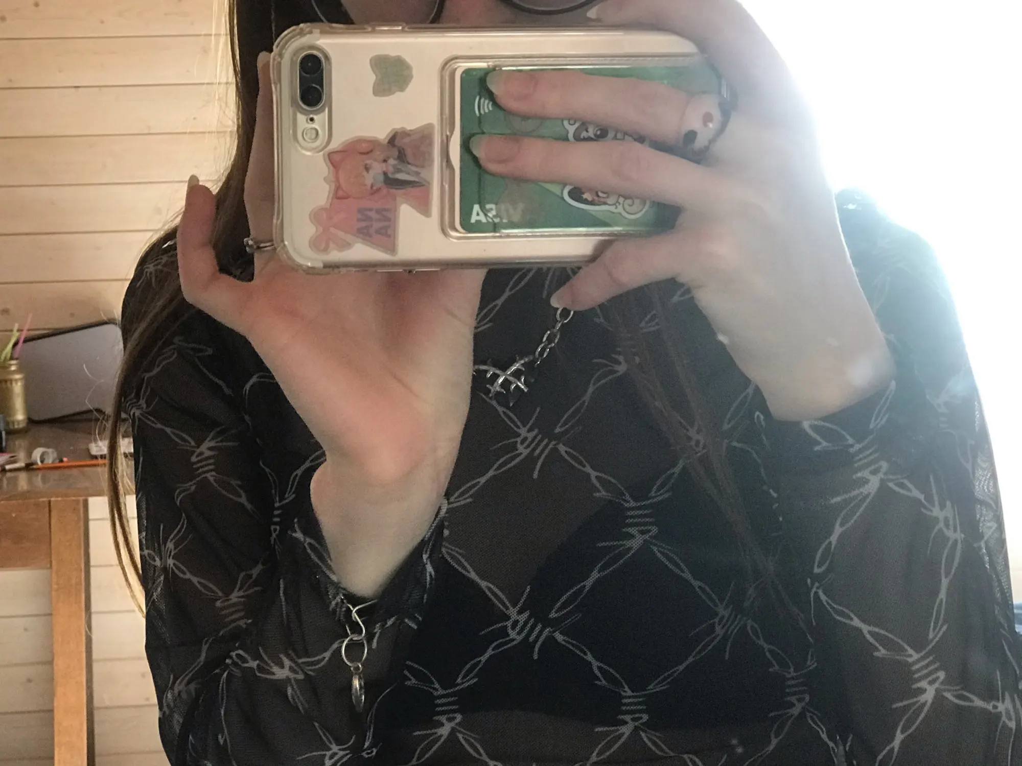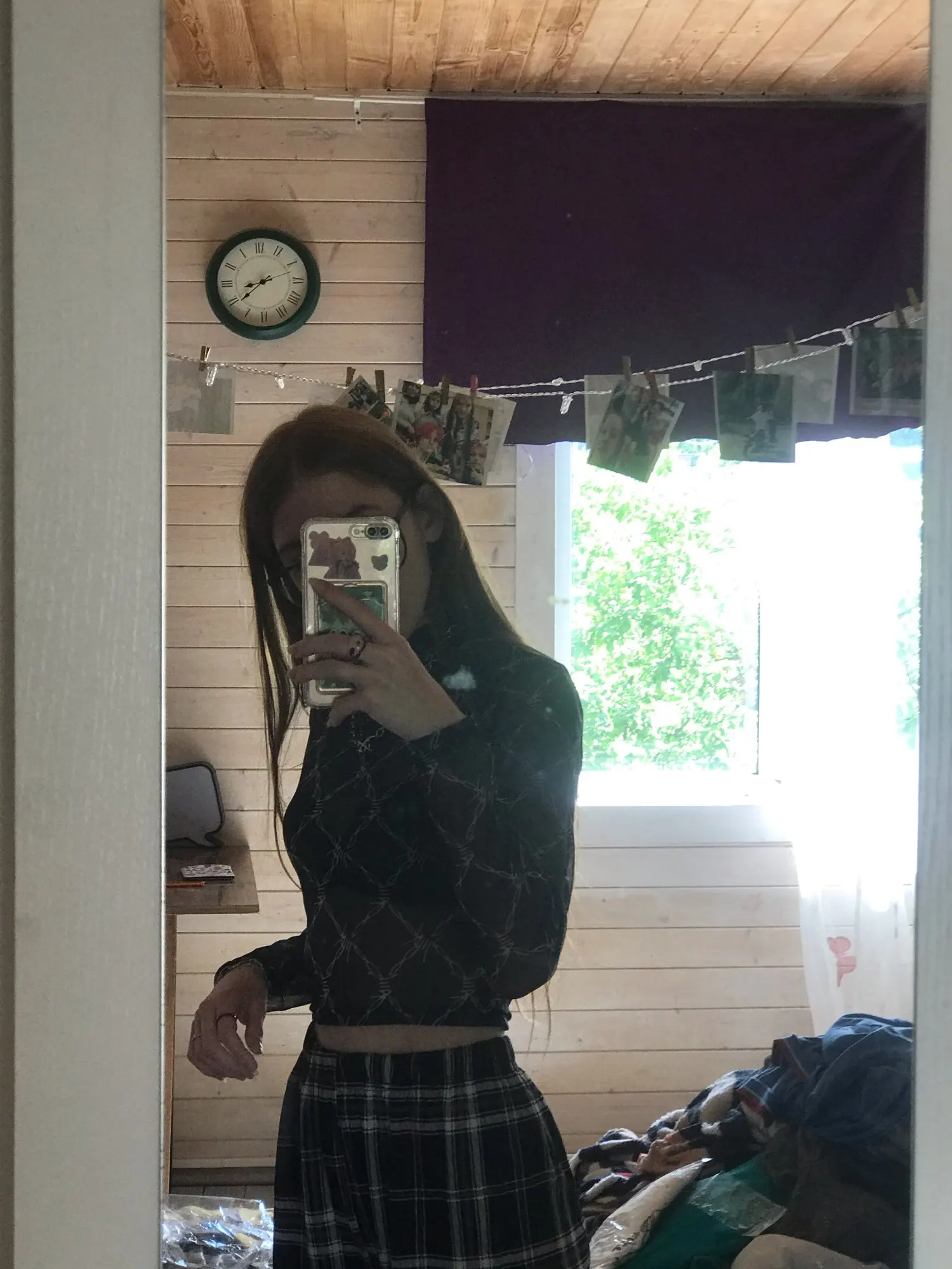 Люблю эту сетчатую рубашку. Это укороченный топ, он милый, если вы в нем.