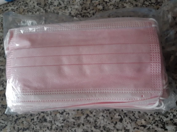 Маски хорошего качества и приятного цвета. Не жесткие, фиксация хорошая, количество пришло указанное, 4 пачки по 50 штук, запаковано надежно. На лицо (женское) надевается хорошо, петельки не рвутся. Спасибо продавцу!