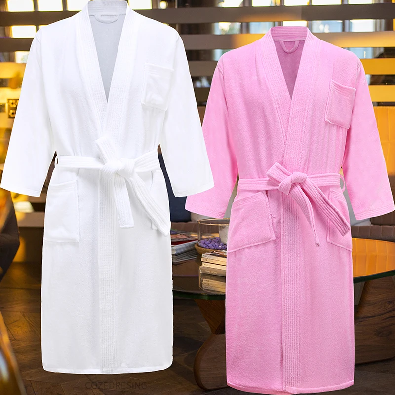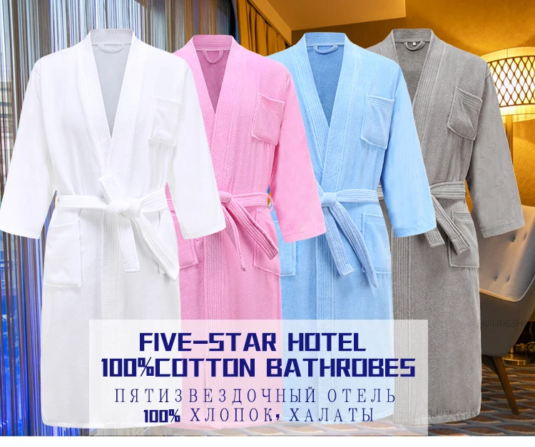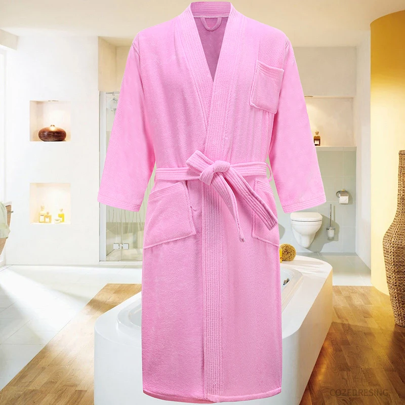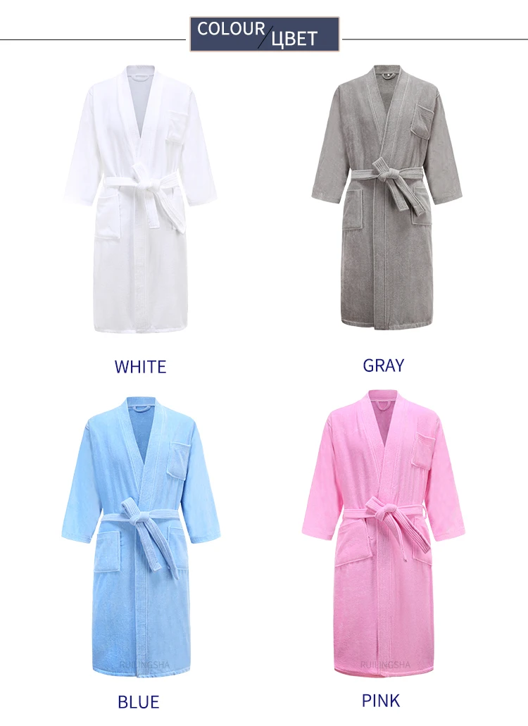 Халат Махровый хлопковый с длинным рукавом, для женщин и мужчин, размера плюс