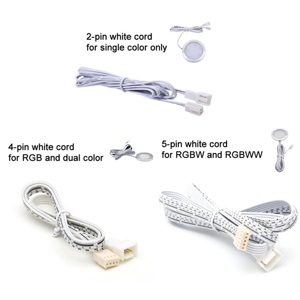 4 шт./лот 2PIN/4PIN/5PIN гибкие выдвижные кабели шнуры для одного цвета/RGB/RGBW LED под шкафом шайба освещения 150 см
