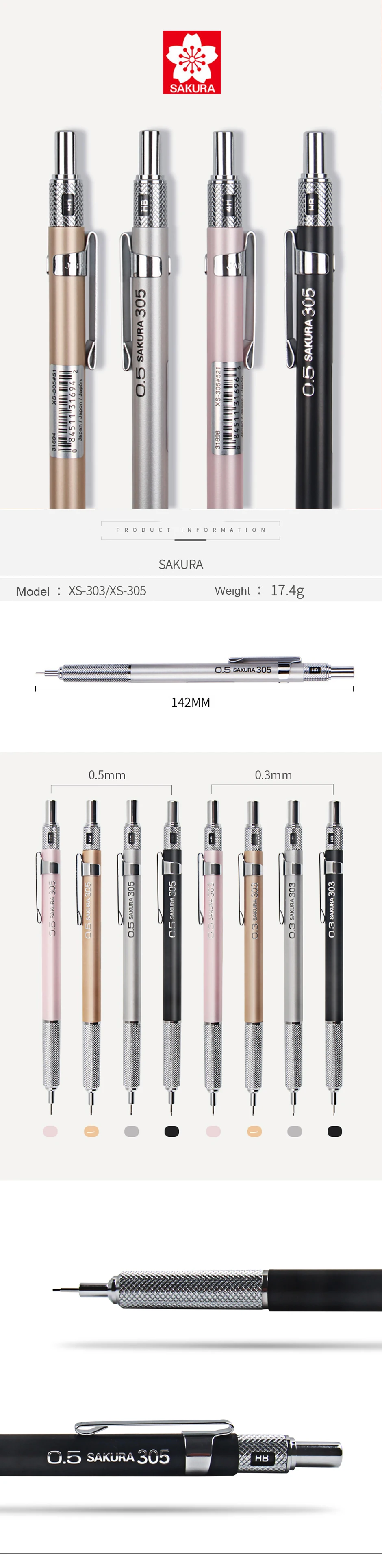 Механический карандаш для рисования Sakura, ручка, металлический стержень, постоянно записывающий ученический эскиз, дизайнерский механический карандаш 0,30,5 мм