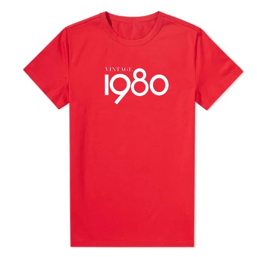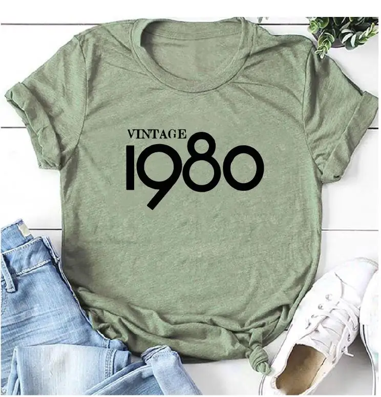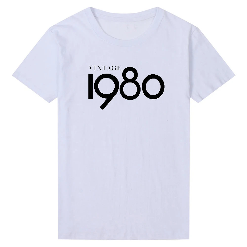 Женская Винтажная футболка с буквенным принтом, 1980, топы на 1-й день рождения, повседневные гранж-футболки из 100% хлопка, футболка с коротким рукавом, Прямая поставка