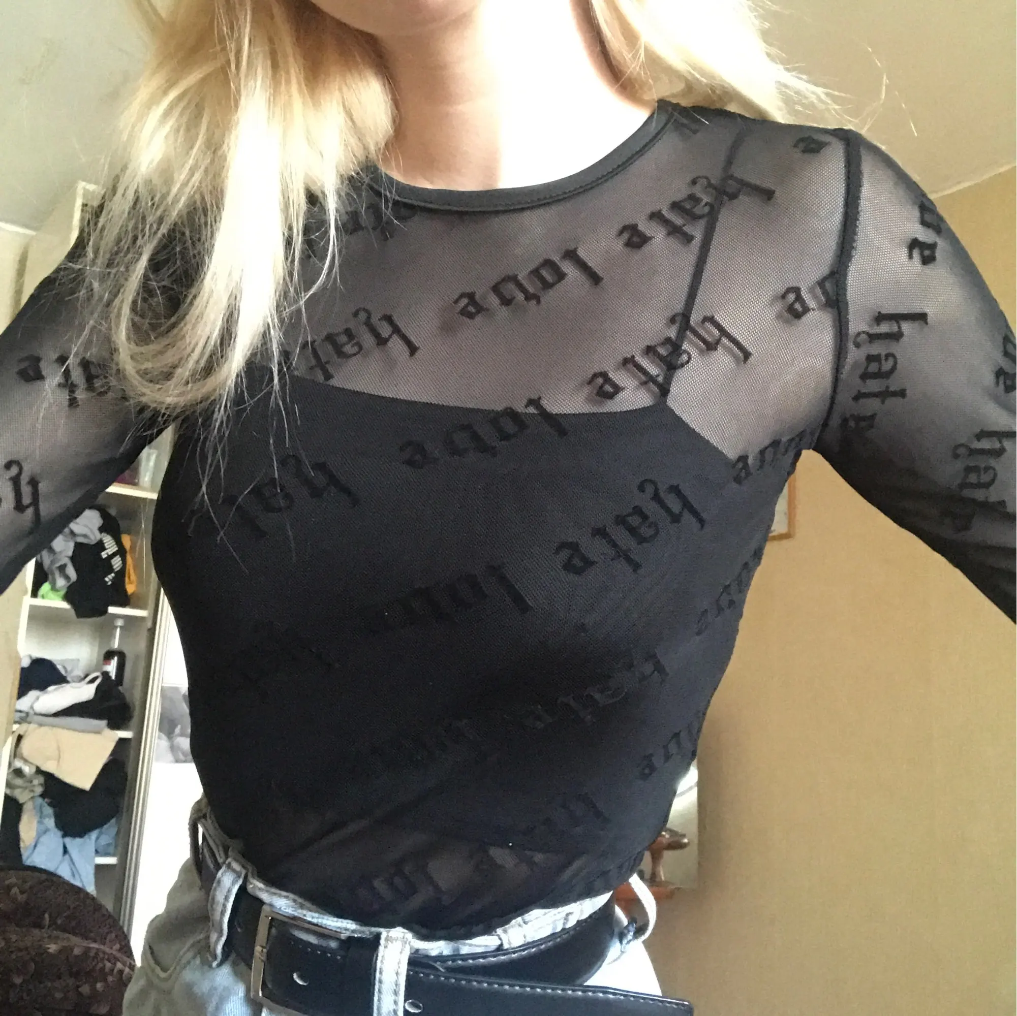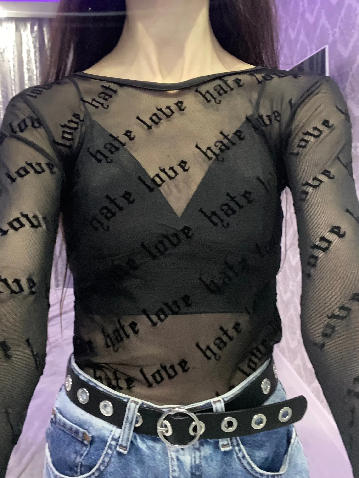 Сексуальные женские сетчатые футболки, прозрачная перспективная футболка с буквенным принтом и круглым вырезом, прозрачные женские топы