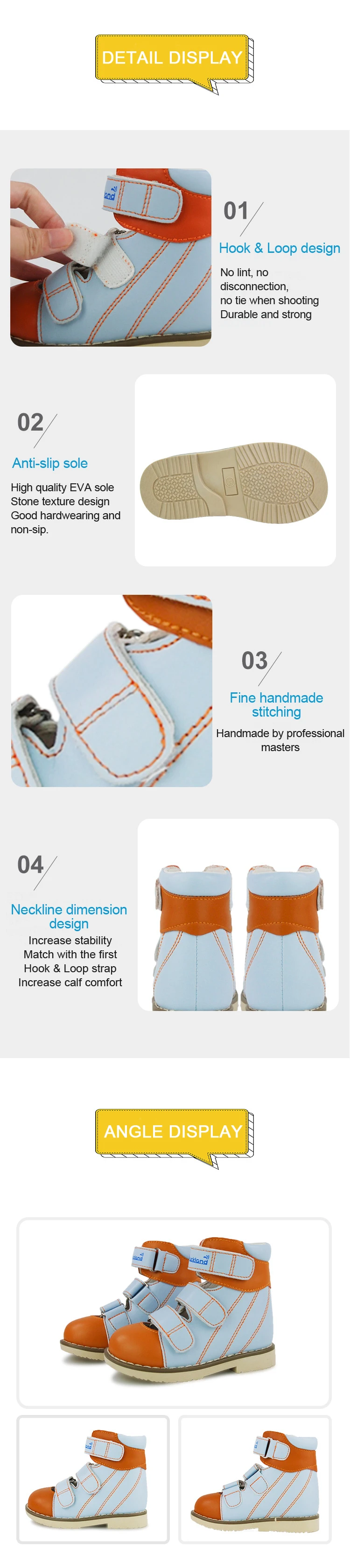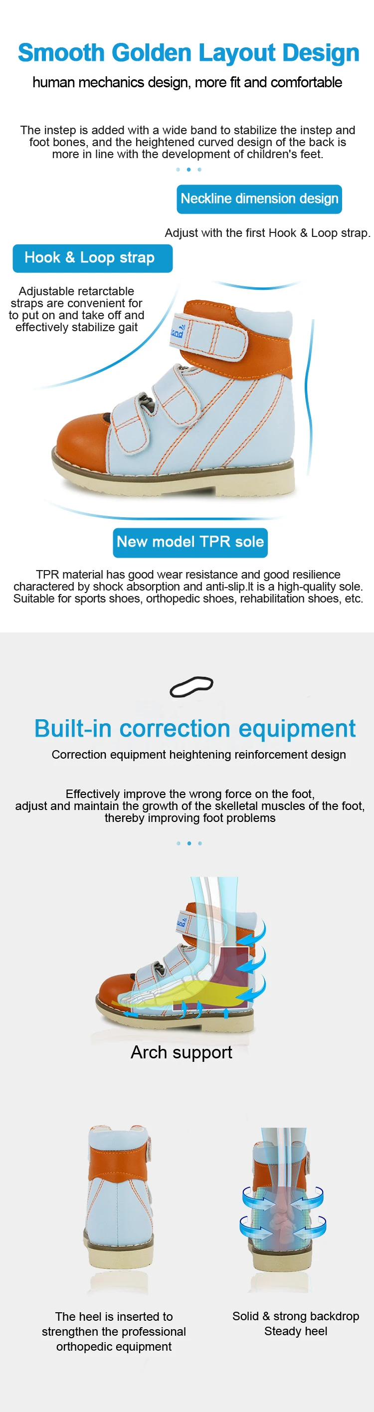 1. Какие ортопедические туфли?Ортопедическая обувь-это медицинская обувь, предназначенная для предотвращения и коррекции патологии стопы, может защитить суставы стопы и исправить деформацию стоп, чтобы помочь здоровому росту суставов детских ног. 2. Каковы особенности ортопедической обуви?1) прочные и прочные удлиненные задние колпачки стабилизируют ноги в правильном положении. 2) мягкие внутренние воротники обеспечивают гладкий контакт кожи с краями обуви во время движения. 3) стелька с супинатором и подошва с каблуком Томаса обеспечивают поддержку ног. 4) застежки-липучки плотно и надежно фиксируют ноги внутри обуви.3. Каковы функции ортопедической обуви?Для предотвращения и лечения ортопедических отклонений. Для предотвращения и коррекции плоскостопия детей, варусная стопа, вальгусная стопа, супинатор, пронатор, косолапость, х/о нога и т. Д. 4. Подходит ли для обычной стопы ортопедическая обувь?Да, нормальные здоровые ноги также подходят для ношения ортопедической обуви. Ортопедическая обувь очень важна для первых шагов ребенка, она фиксирует стопу, увеличивает область поддержки стопы и перераспределяет нагрузку тела, избегая деформации стопы, чтобы помочь нормальному здоровому росту ног. Поэтому родитель должен начать выбирать ортопедическую обувь для ваших детей, когда ребенок учится ходить.