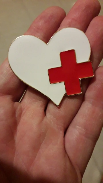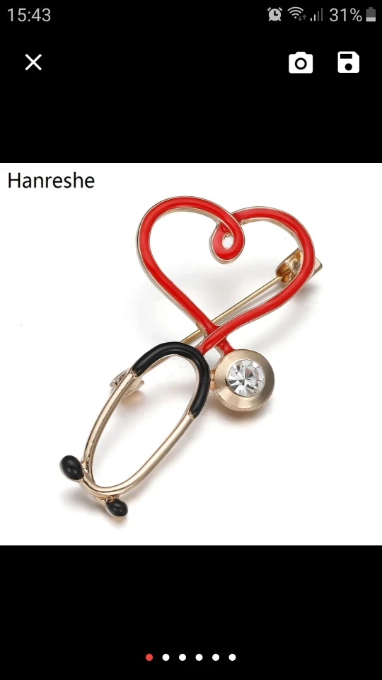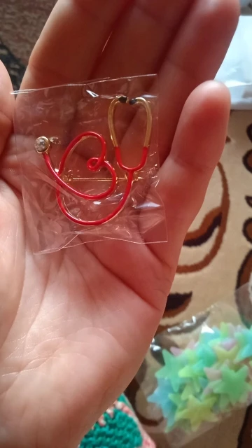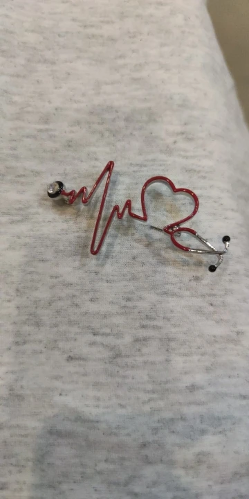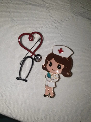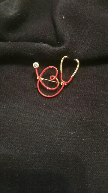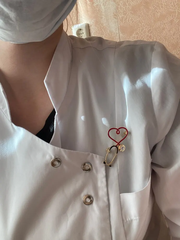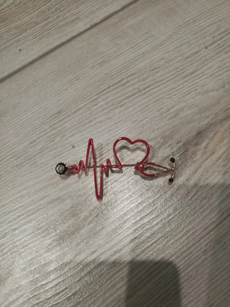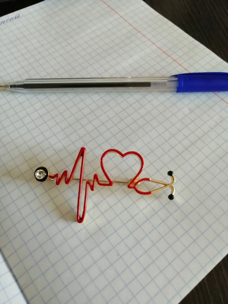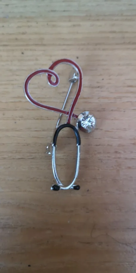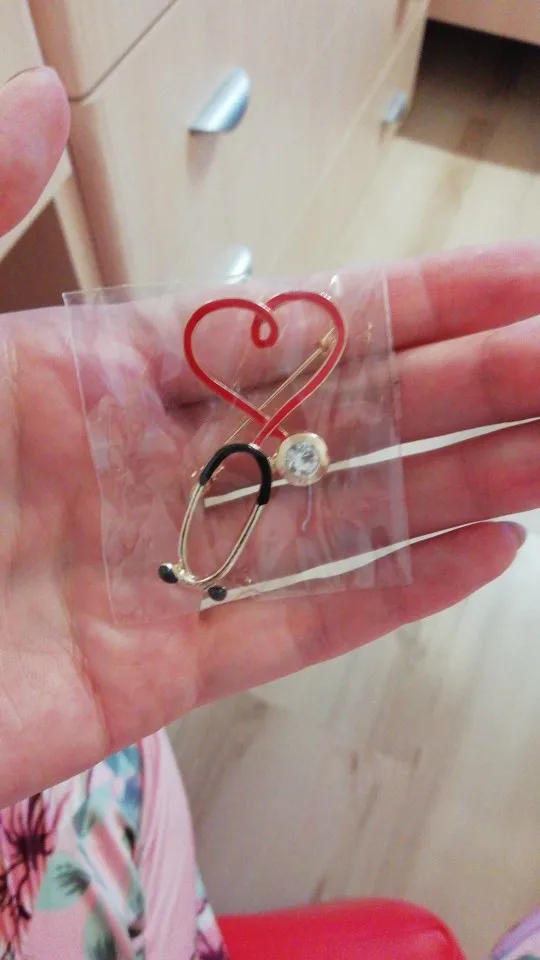 Брошь большая, яркая) Сразу бросается в глаза красное сердце на белом халате) Рекомендую! Без внимания не останетесь)