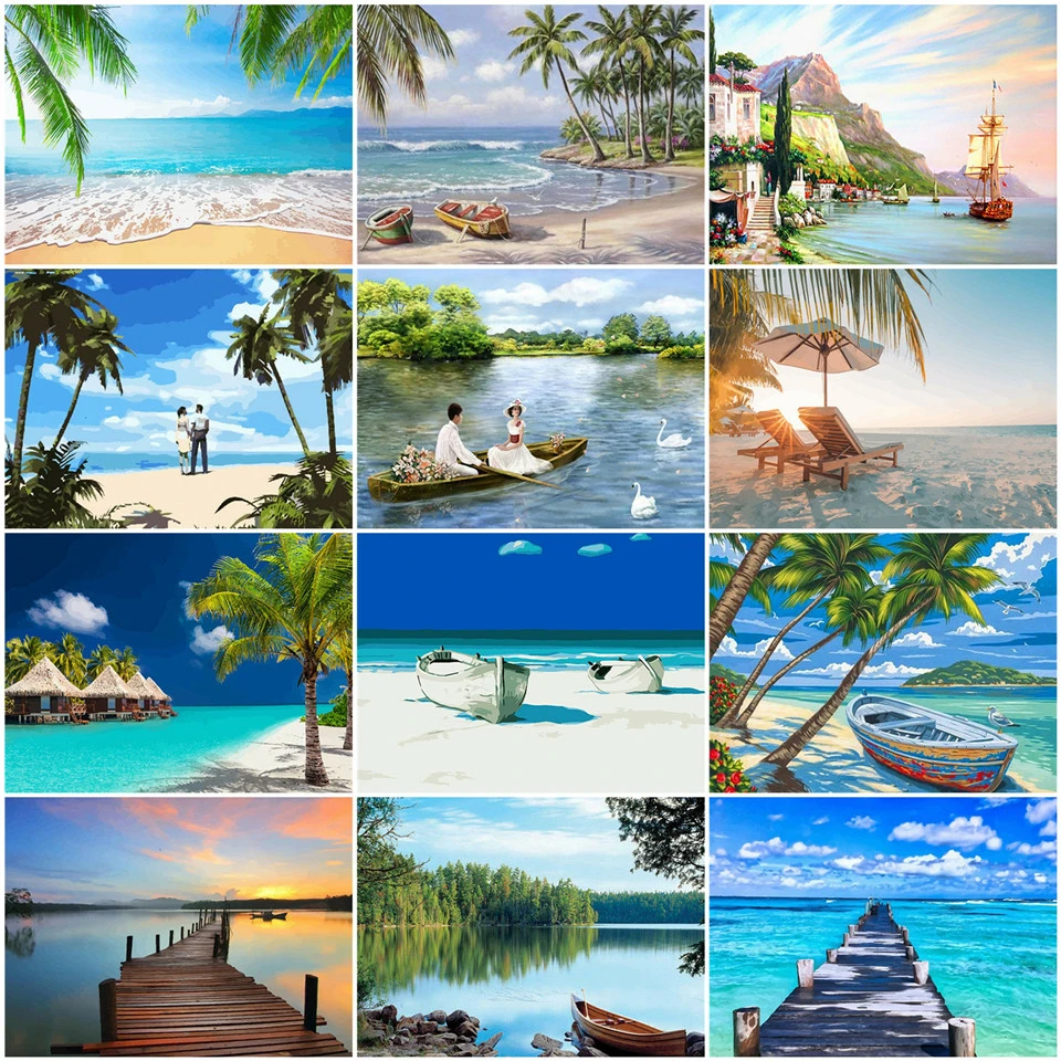 AZQSD Краски Раскраска по номерам холст Краски ing Наборы Приморский DIY настенные Арт Хо Раскраска по номерам Пейзаж сада украшения дома