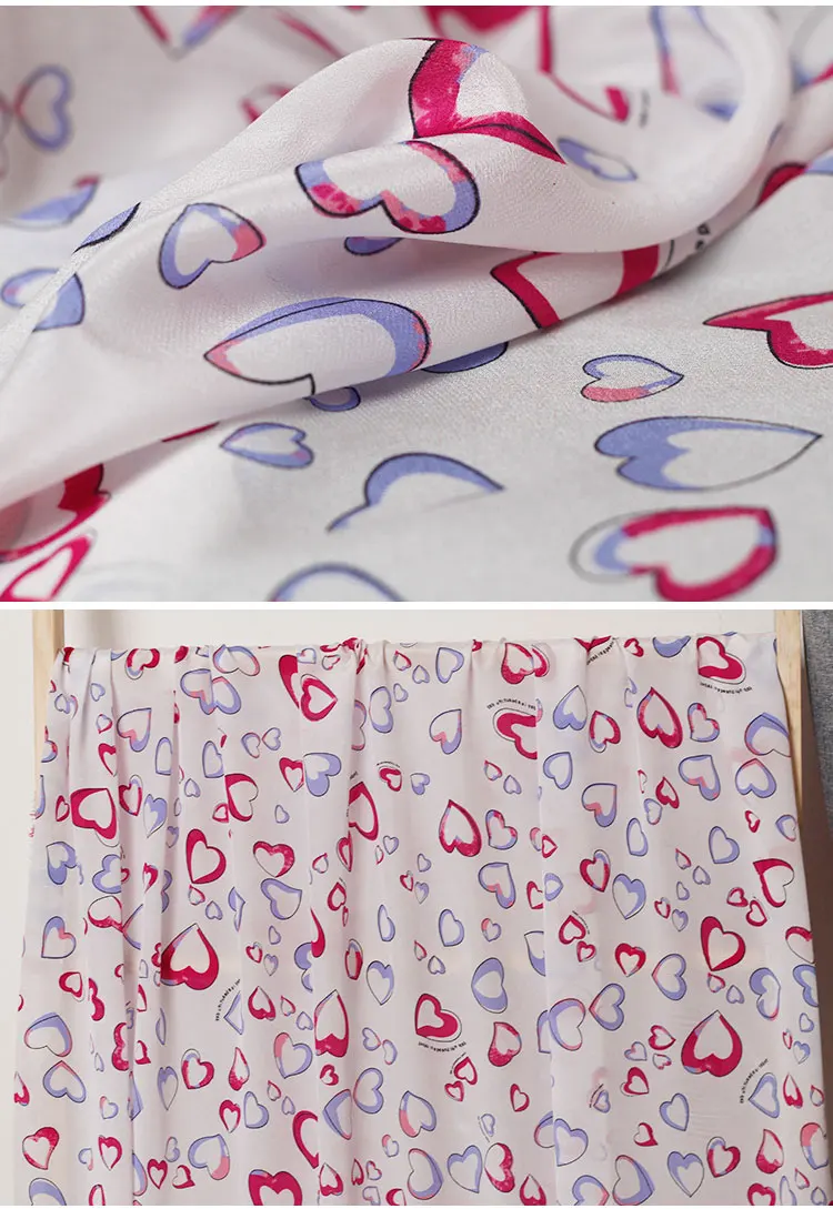 Белая шелковая крепдешиновая ткань с принтом сердца waxberry12momme, 100% шелковые материалы, женское платье, рубашка, ткань для портных, бесплатная доставка
