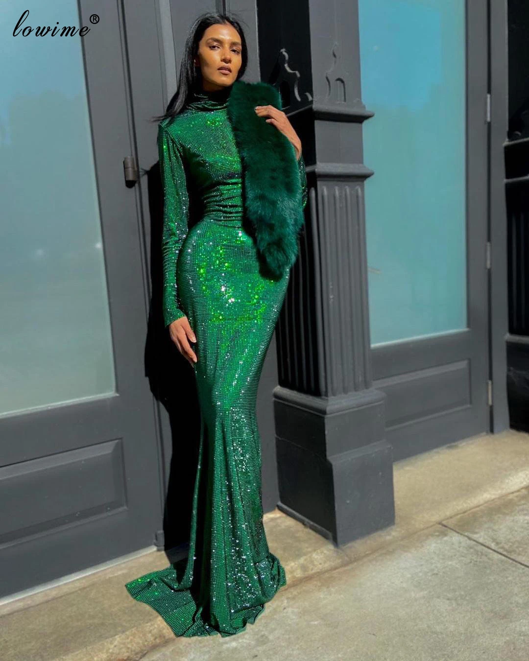 Женское вечернее платье зеленого цвета с длинными рукавами 2020, модные платья для выпускного вечера с арабским русалочкой, вечерние платья для женщин