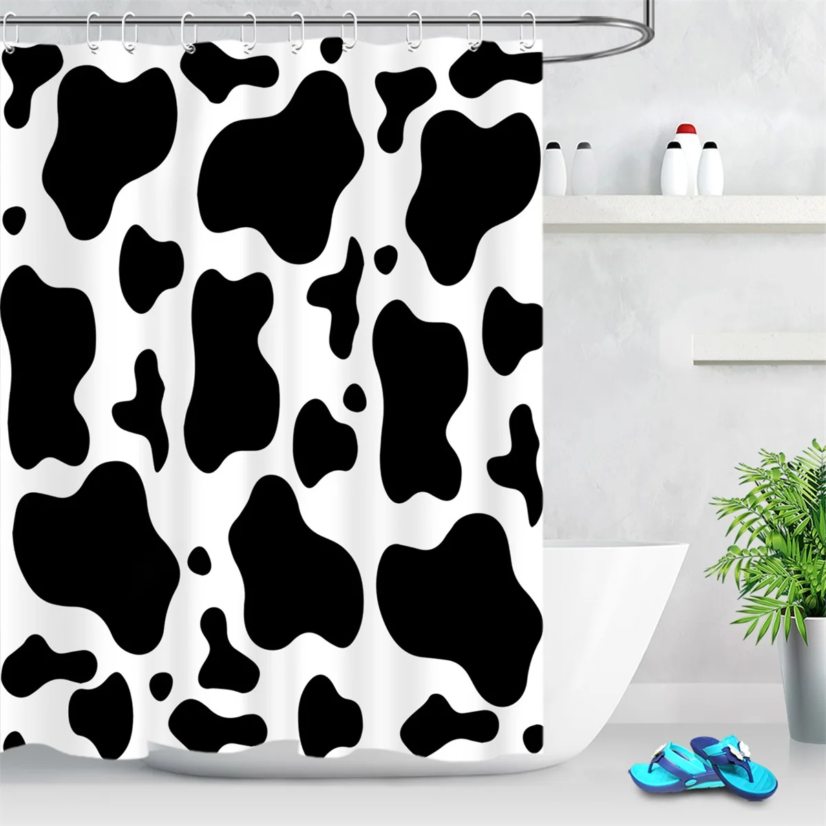 Водонепроницаемая занавеска для душа, занавеска из полиэстера с черно-белыми пятнами, с принтом коровы, с крючками, декор для ванны
