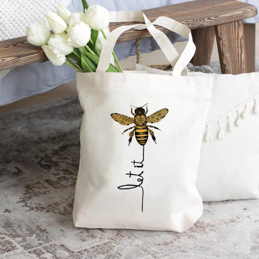 Сумка женская холщовая многоразовая с графическим принтом Let It Bee