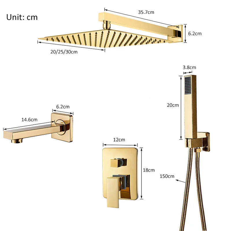 Набор золотистого дождевого душа для ванной комнаты, настенный кран, одна ручка, квадратный ручной душ, дождевая позолота, набор
