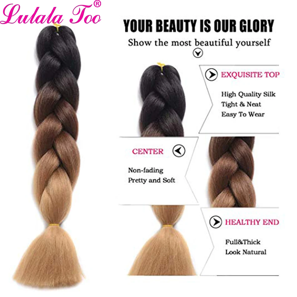 Коса для плетения волос, 24 дюйма, 100 г, розового, фиолетового, синего, коричневого цвета, с эффектом омбре