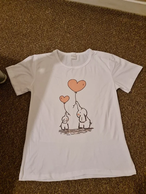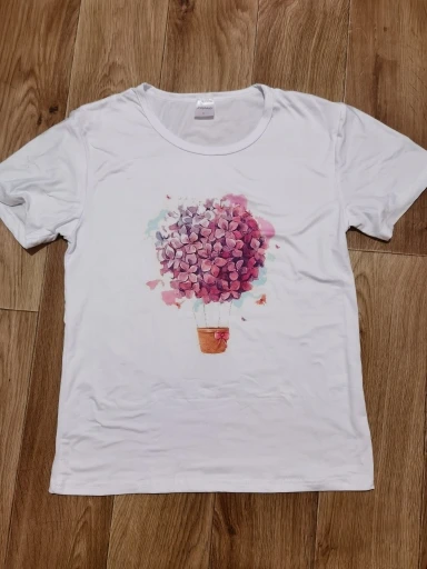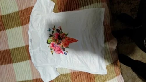 Все таки надеялась, что футболка будет хлопок. Немного разочарована. Но она очень белоснежная и с ярким рисунком. Хотя рисунок в разы меньше, чем на картинке. И, может я ошибаюсь, о такая ткань быстро сереет после стирок.