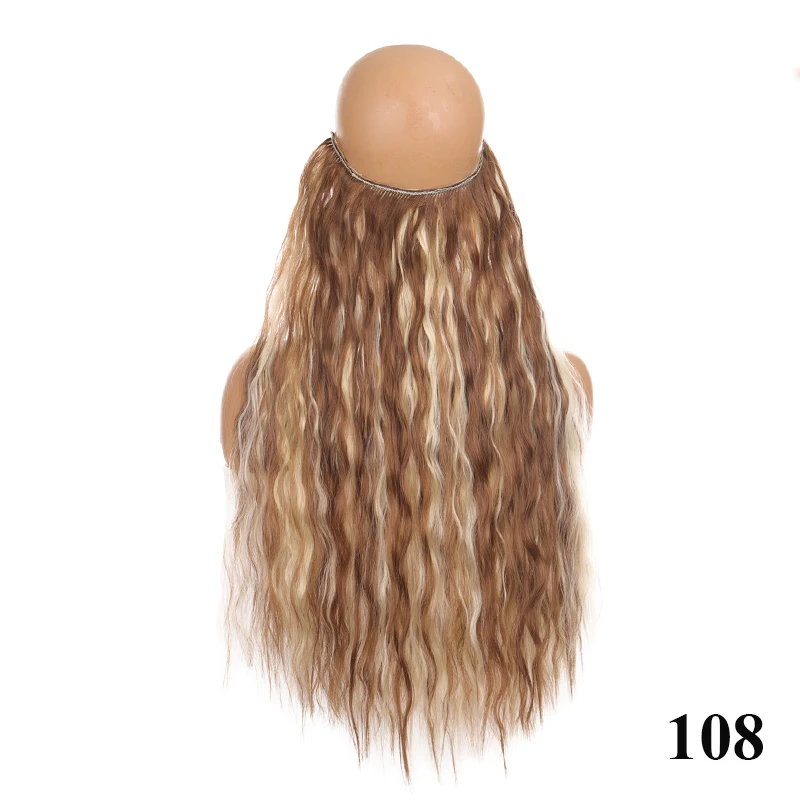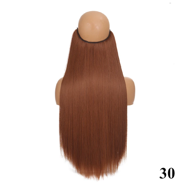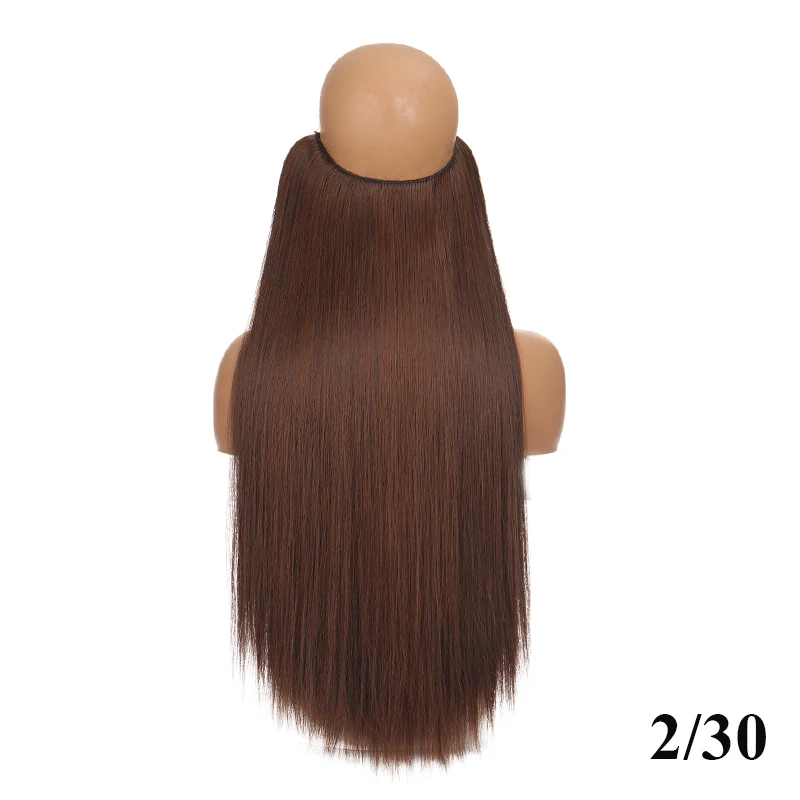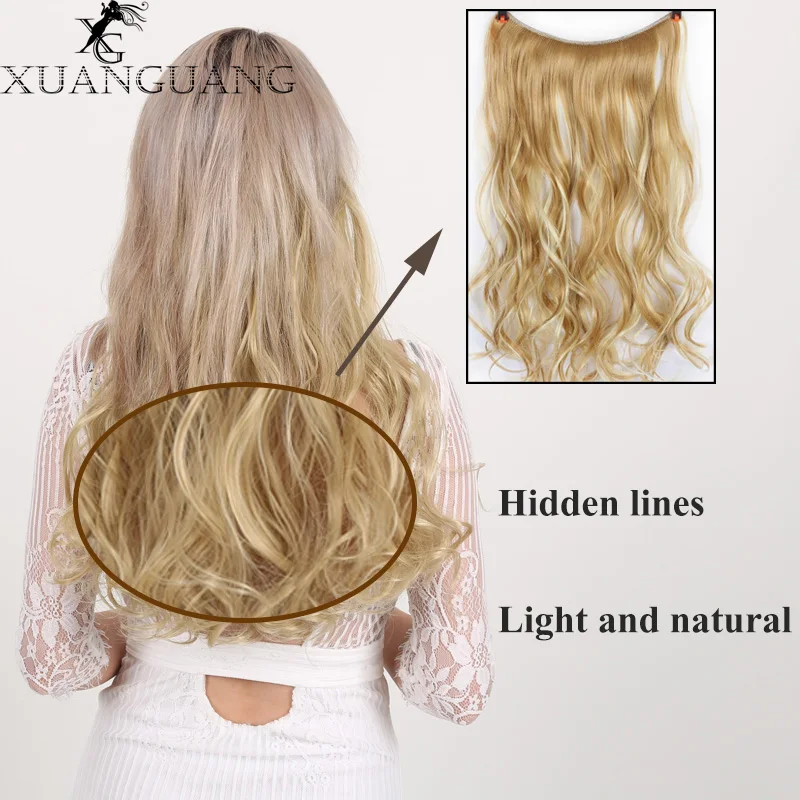 XUANGUANG 60 см женские волосы для наращивания из рыбьей лески, коричневый, черный, натуральный, прямой, волнистый, синтетический, длинный парик, без зажима