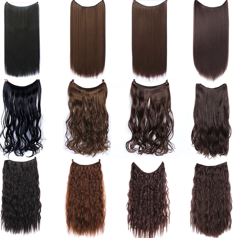 XUANGUANG 24-дюймовые длинные вьющиеся прямые синтетические волосы для наращивания, леска для волос, звенья, без зажимов, натуральные скрытые