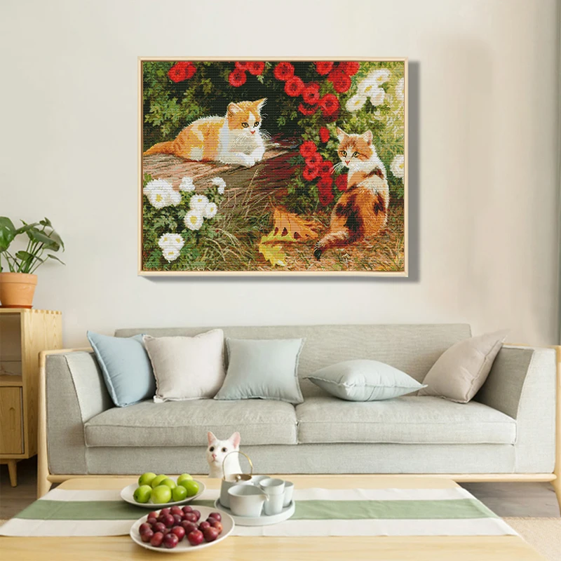 Набор для вышивки крестиком с изображением двух котят в саду, DMC хлопковая нить 14CT 11CT, Набор для вышивки с изображением животных, рукоделие