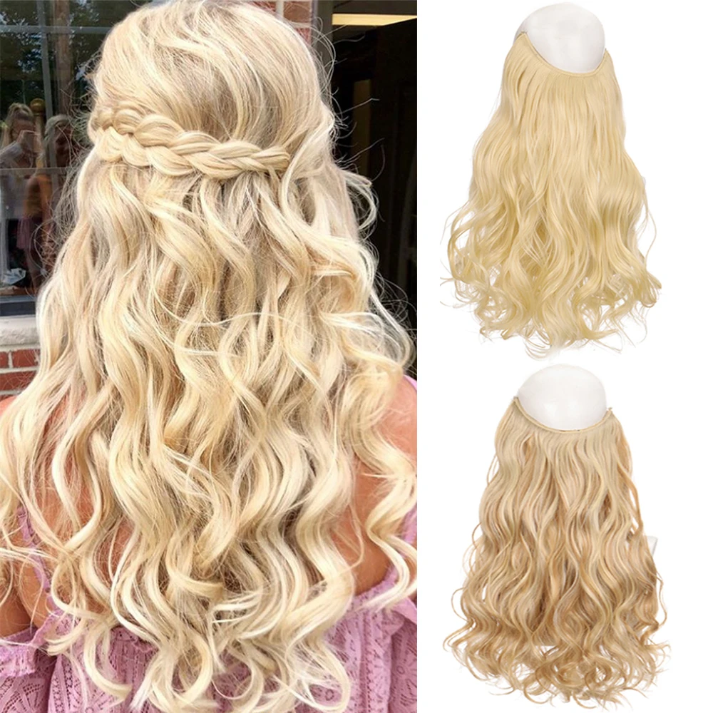 XUANGUANG 24-дюймовые синтетические термостойкие волосы для наращивания на рыбьей леске без зажима для наращивания, Длинные прямые волнистые волосы для наращивания