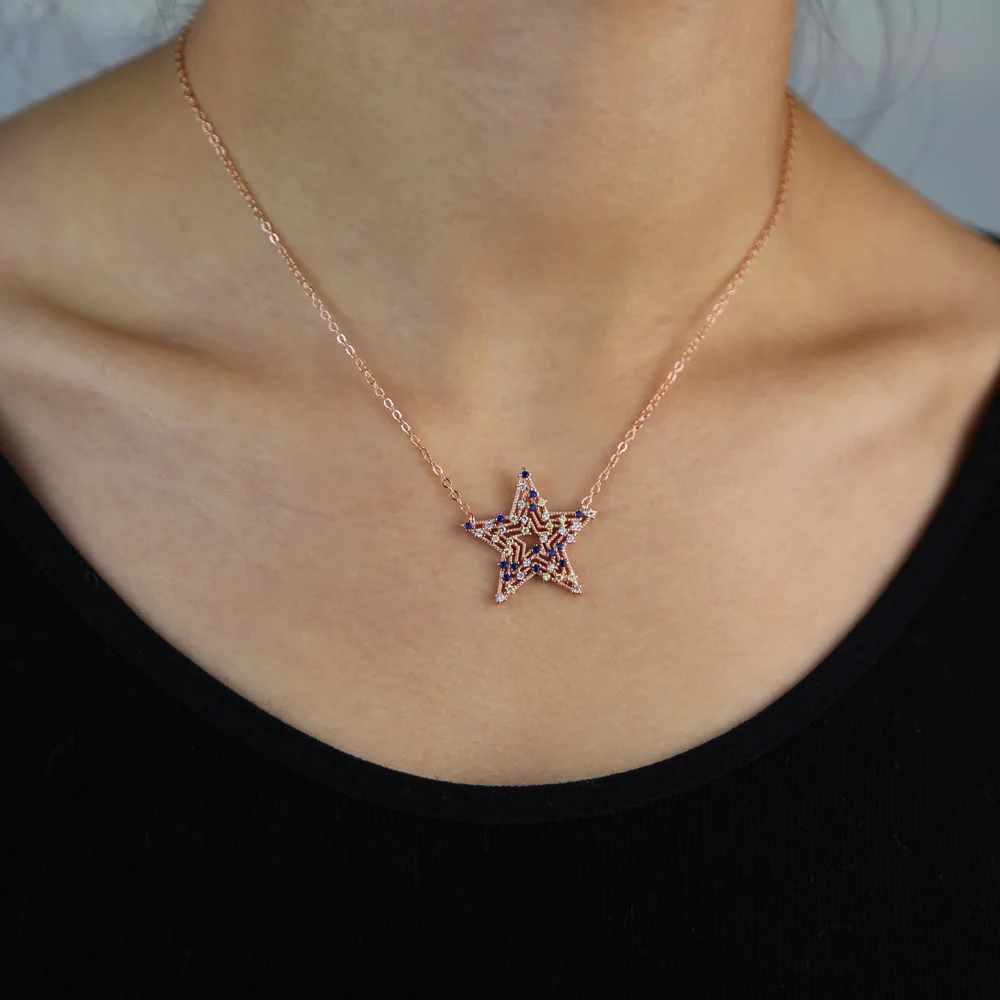 Ожерелье cz star, цвет розового золота, 41 + 5 см, классические модные женские украшения