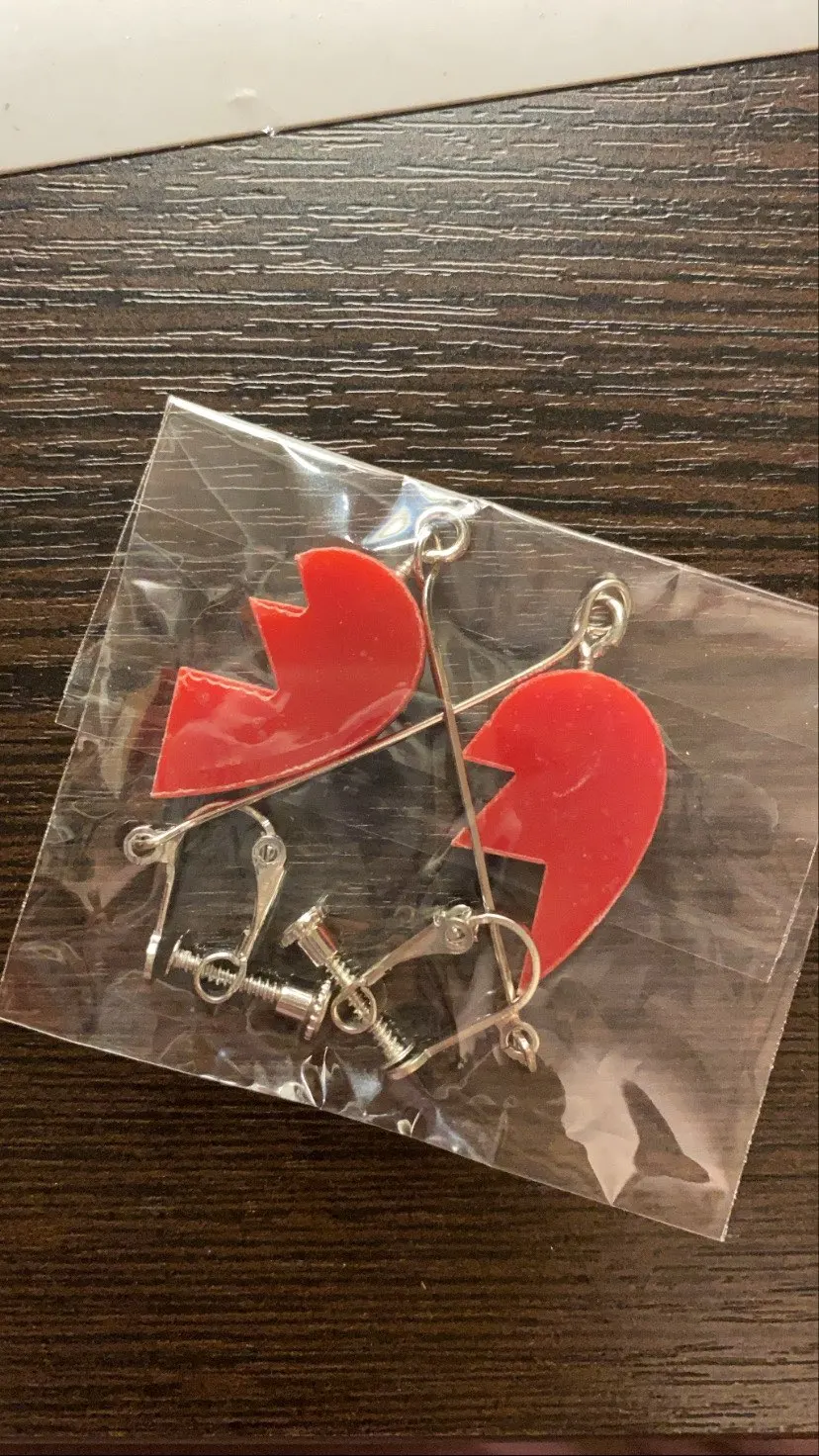 Пришло за месяц. Упакованы в прозрачный пакетик. Я думала они будут больше. Хорошо что продавец положил с ними прозрачные заглушки. Сами сердечки немного покоцаные, но это не особо видно из далека. Брала как подарок подруге товаром довольна