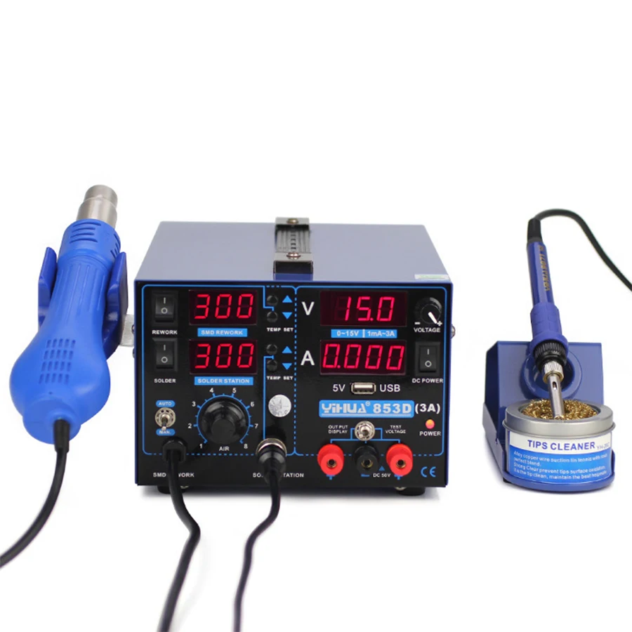 YIHUA 853D 3A USB паяльная станция горячего воздуха пистолет 3 в 1 SMD DC источник питания паяльная станция 110 В 220 в EU US PLUG