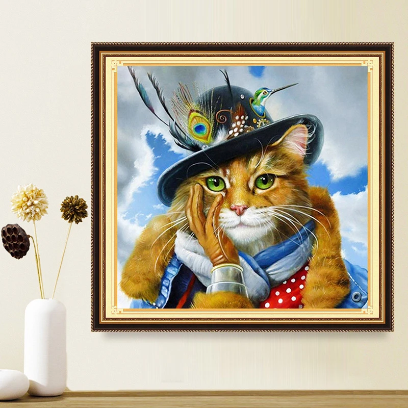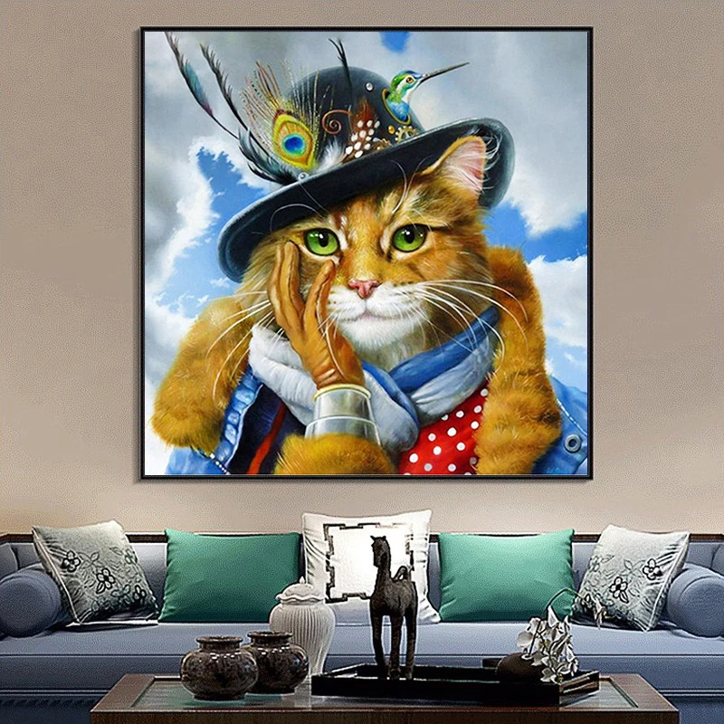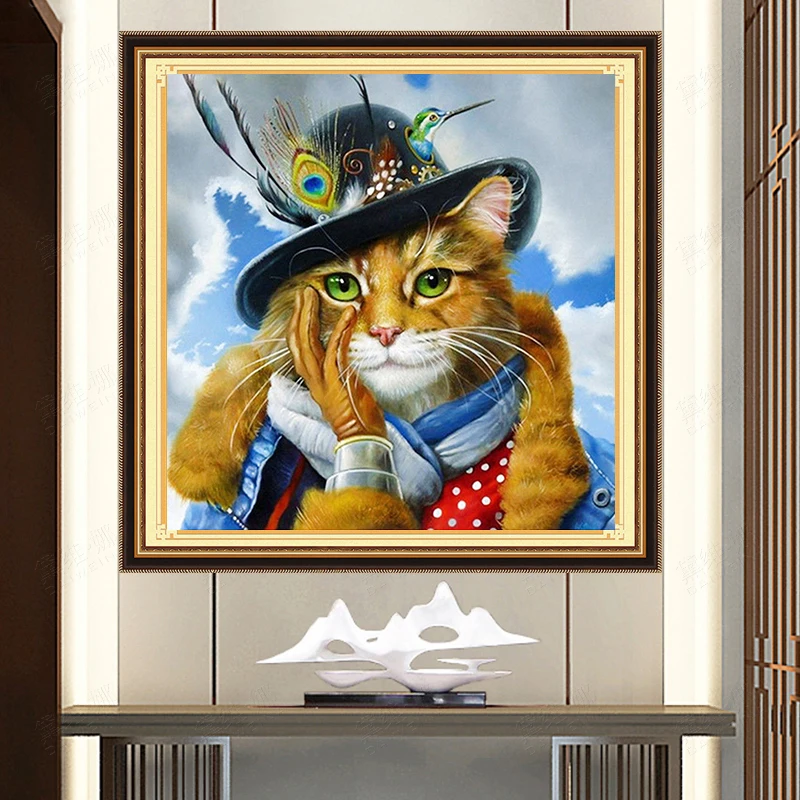 Алмазная вышивка 5D сделай сам с квадратнымикруглыми стразами, Кот джентльмен, вышивка крестиком, украшение для дома, подарок