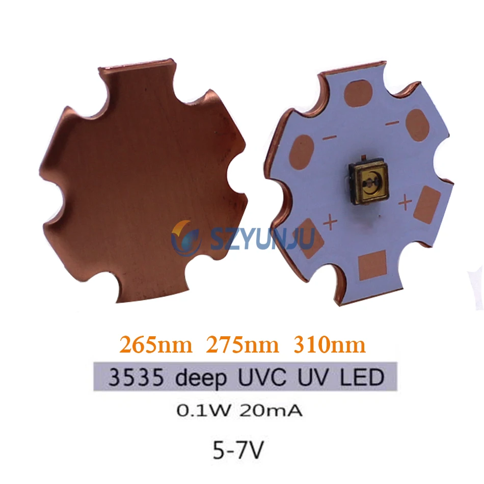 Светодиодный УФ-стерилизатор UVC, 3535, 0,1 Вт, нм, нм, 5-7 в, с медной печатной платой 20 мм
