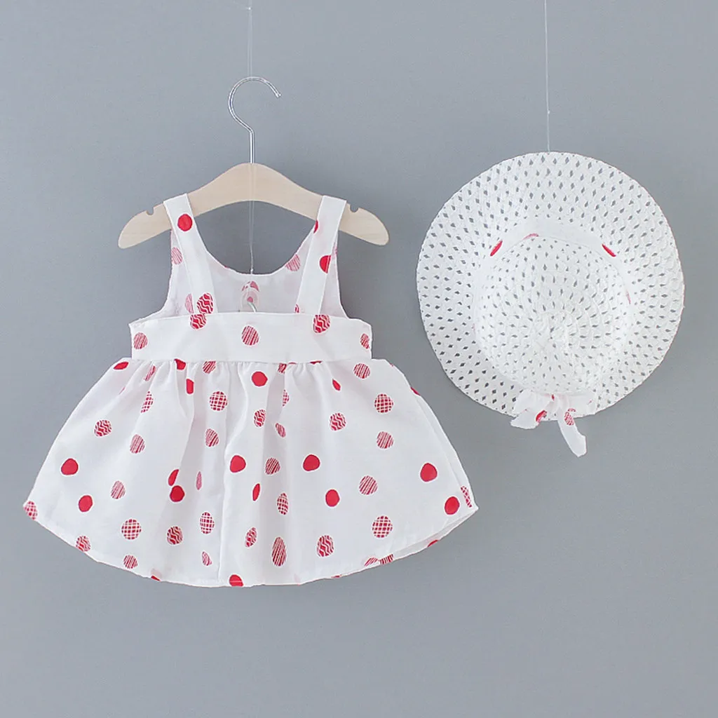 Комплект одежды для маленьких девочек ясельного возраста летнее платье 2020 модные резиновые сапоги с рисунком в горошек, платье принцессы с рисунком для девочек, без рукавов, мини-платье с шапочкой на платья для Оптовая t5