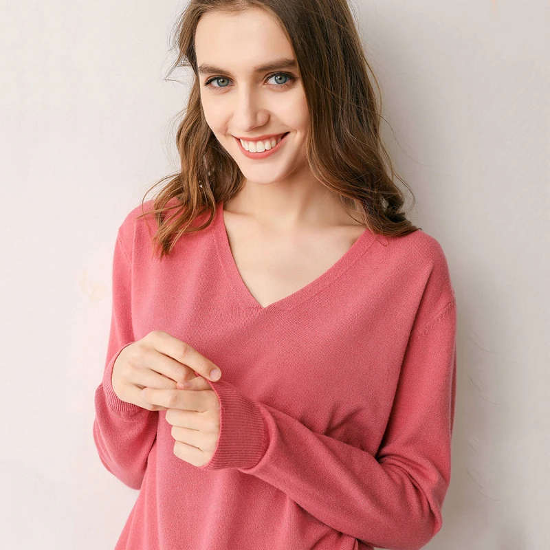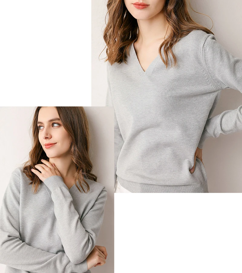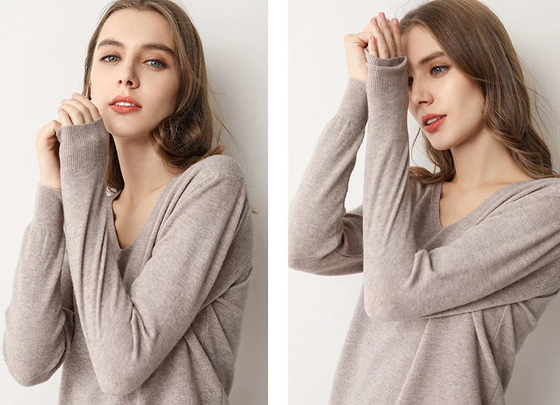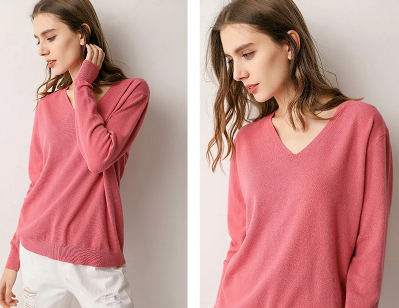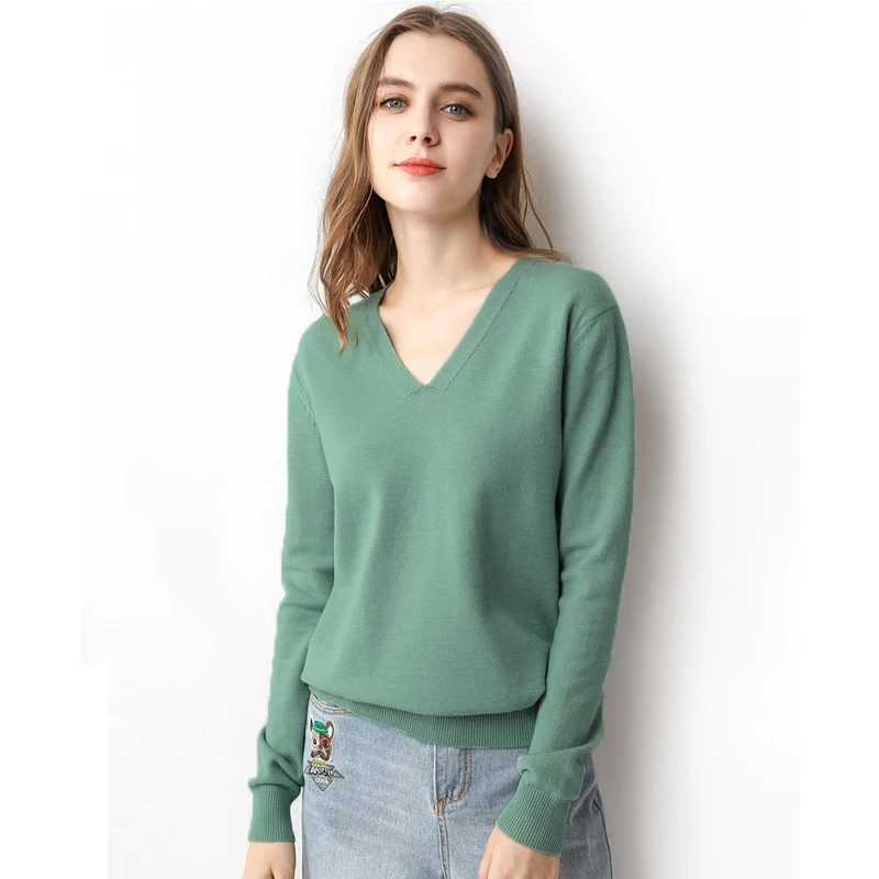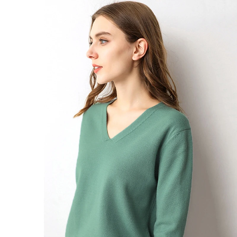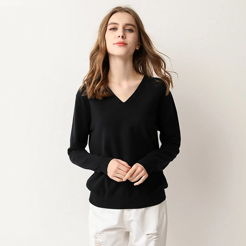 Женский трикотажный пуловер, однотонный длинный Повседневный джемпер с длинным рукавом и v-образным вырезом, осень 2021