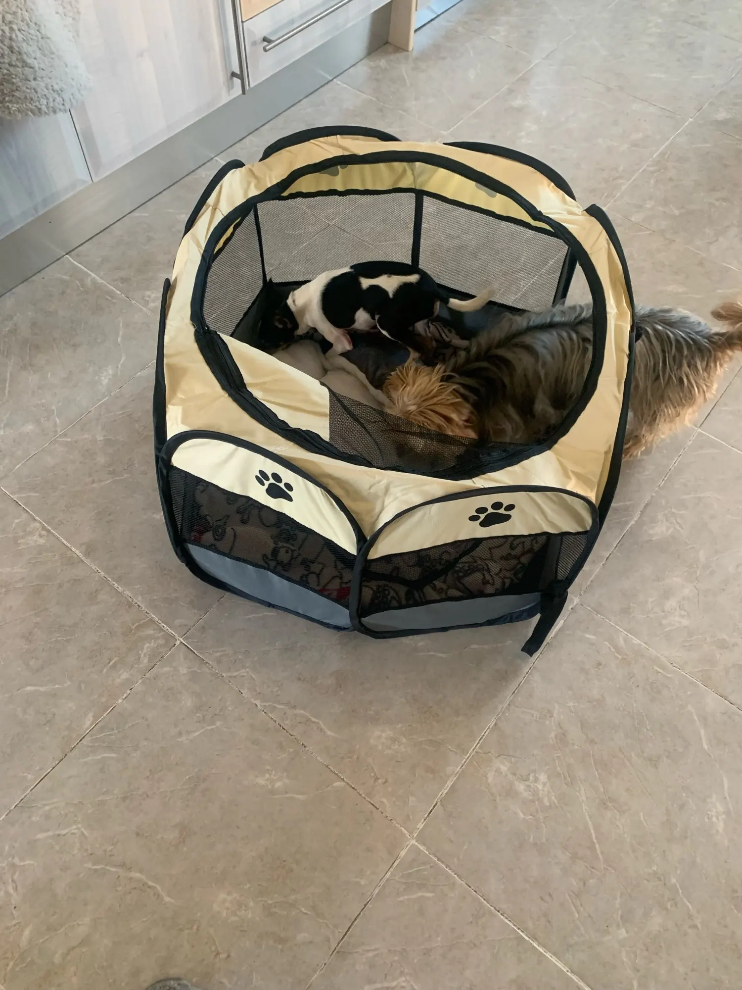 Супер хорошо, когда он не используется, он играет, а не занимает ничего идеального места для маленькой собаки или щенка