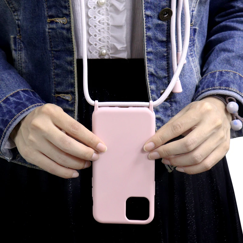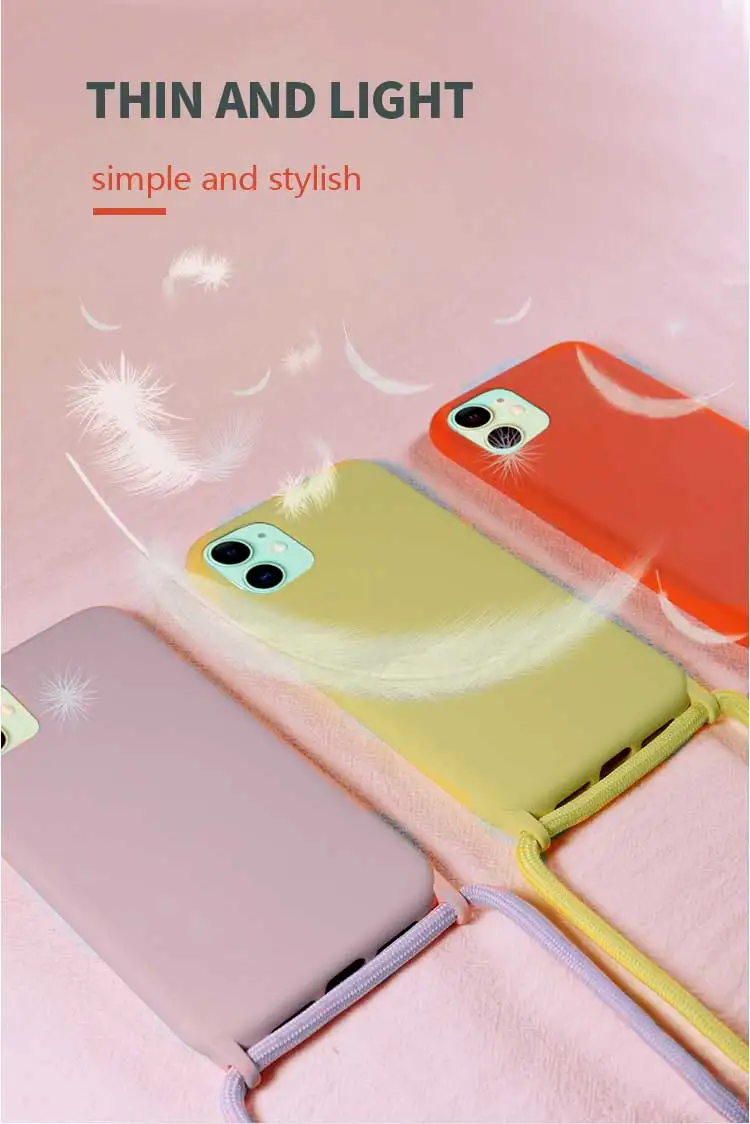 Чехол-накладка для iPhone 11 Pro Max, 6, 7, 8p, X, XR, XS, SE2020, силиконовый, с ремешком через плечо
