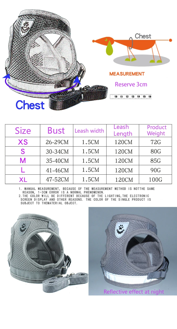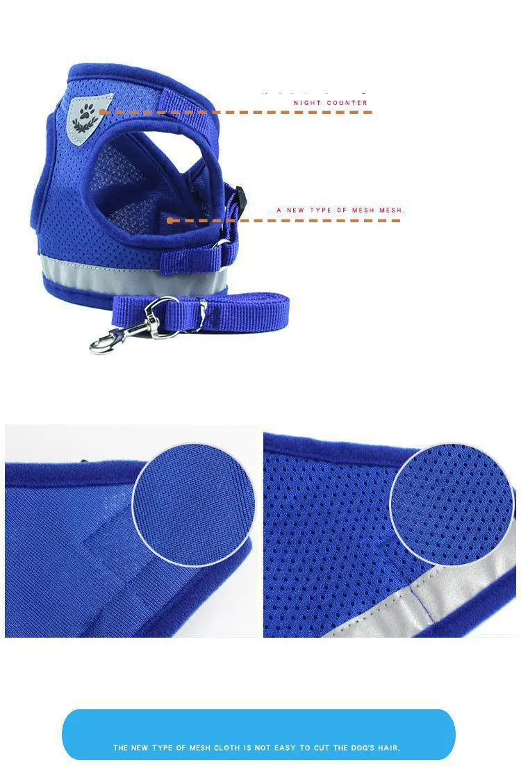 Жилет для собаки, регулируемый светоотражающий сетчатый жилет, ошейник для собаки, нагрудный ремень, поводок с поводком