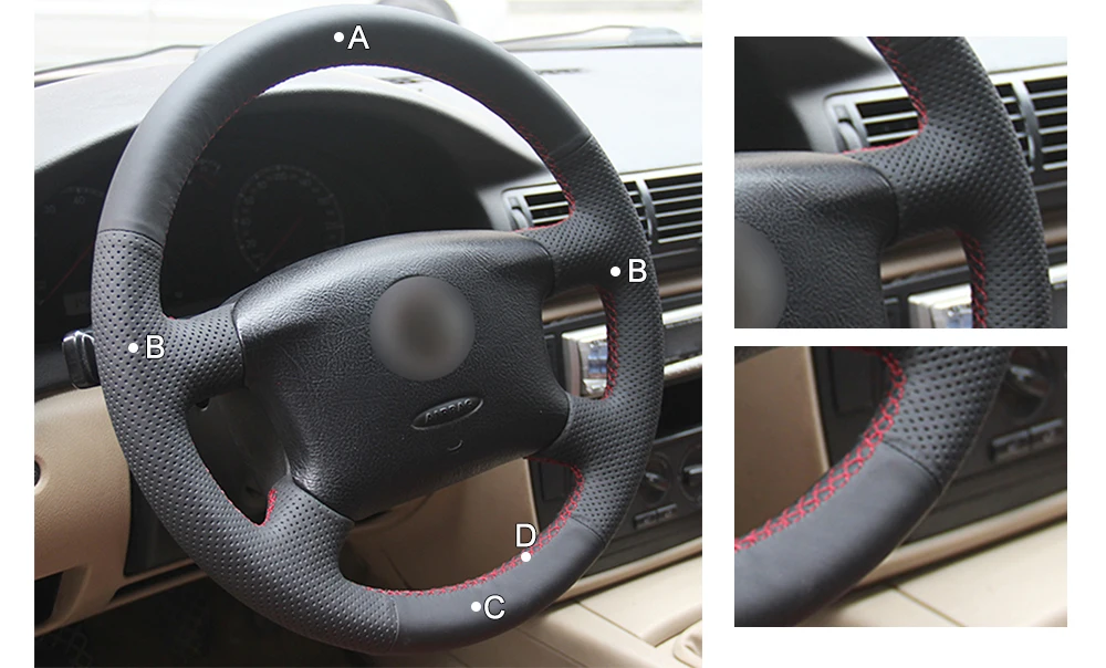 Черный чехол рулевого колеса автомобиля из искусственной кожи для A...