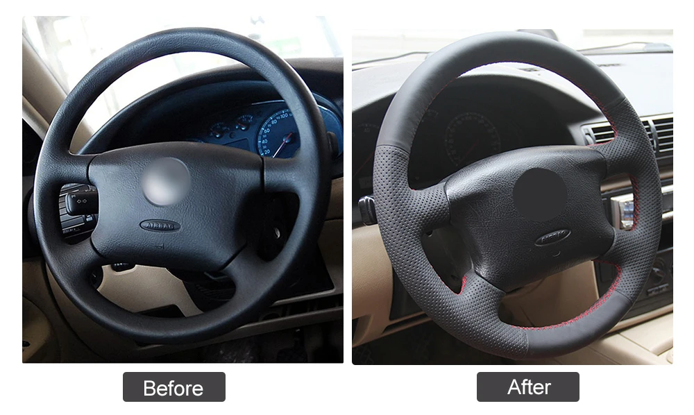 Искусственная кожа черного цвета для Ford Focus 3 Чехол рулевого ко...