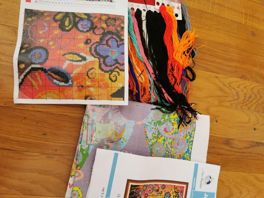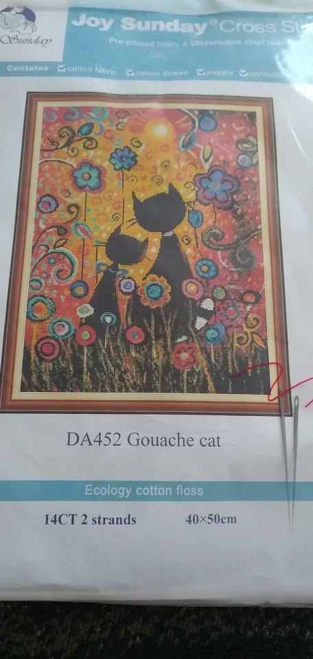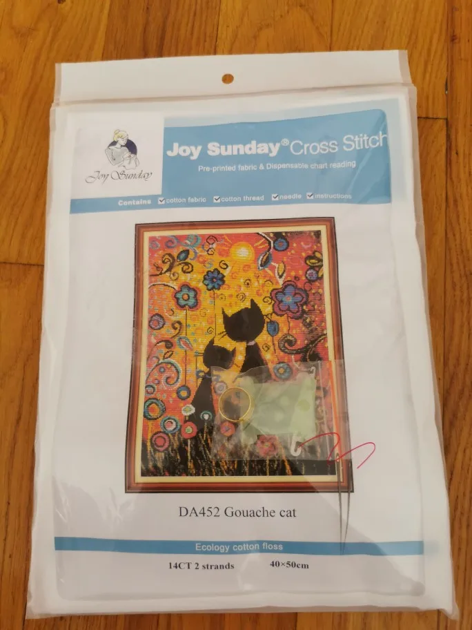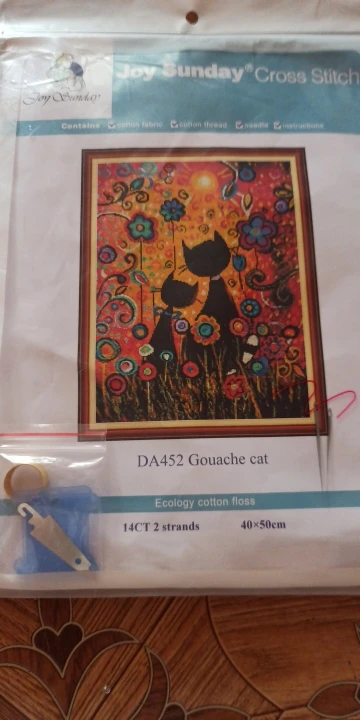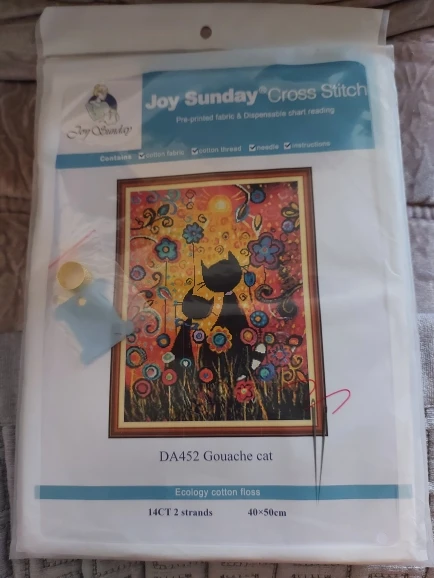 Это первый раз, когда я покупаю ткань с рисунком в комплекте. Правда в том, что я проверяю это, и это намного легче сделать, чем следовать графикам на бумаге. Вся упаковка очень полная. Нити, кажется, хорошего качества. Я начал это делать, и единственное, что мне не нравится, это то, что ткань слишком твердая, но я надеюсь, что пока она сделана, она станет более управляемой. Я буду покупать больше пакетов в этом магазине снова