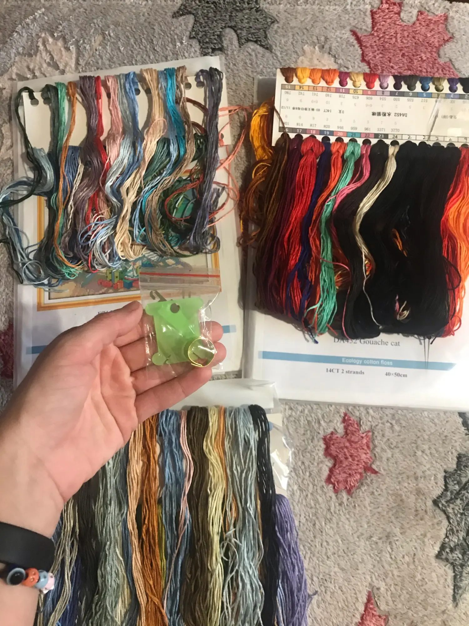 Цвета прикольные, яркие. Плюсом продавец положил подарок: наперсток, штучку для продевания нитки и ещё пару непонятных плостмасок.