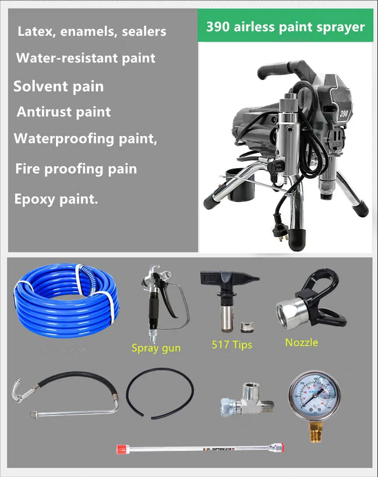 Профессиональный безвоздушный распылитель краски, устройство для безвоздушного распыления под давлением и 390